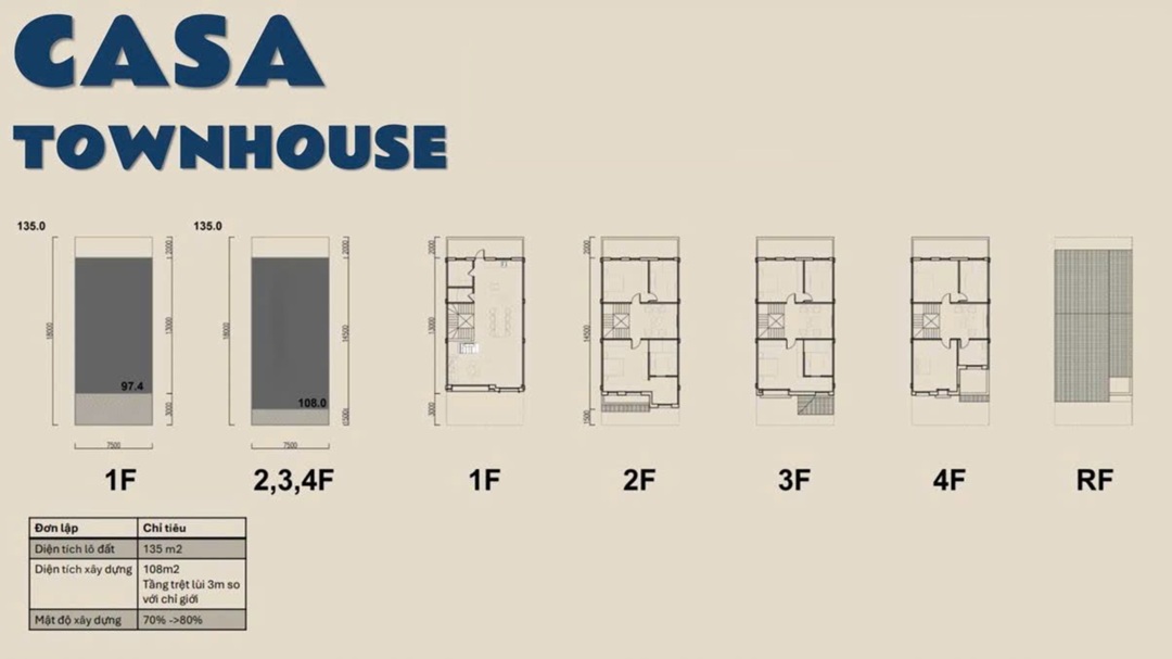 - Từ tầng 2 đến tầng 4, có từ bốn đến sáu phòng ngủ, một phòng sinh hoạt chung và chỗ để lắp đặt thang máy.
